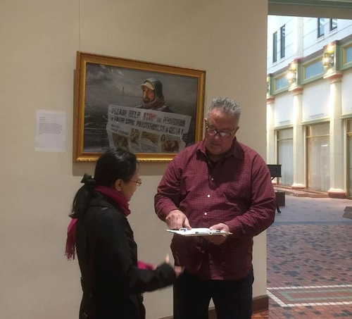 Посетители подписывают петицию, чтобы осудить насильственное извлечение органов у живых людей