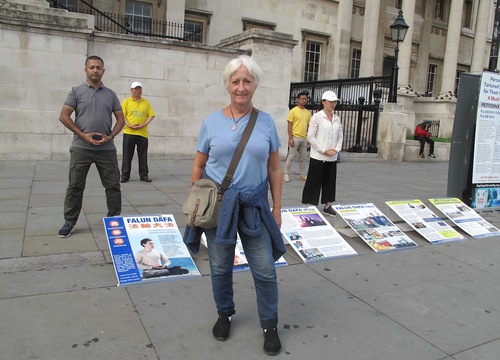Джо, жительница Лондона, когда-то практиковала тайчи и другие виды цигун. Узнав о Фалуньгун на Трафальгарской площади, она поинтересовалась у практикующих, где в Лондоне она может освоить упражнения.