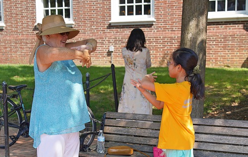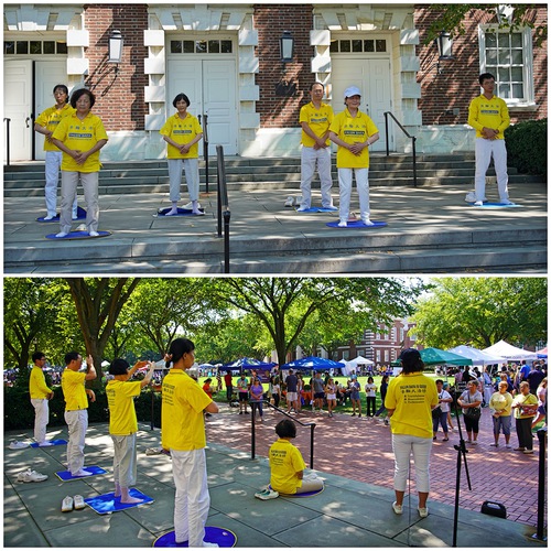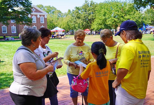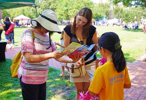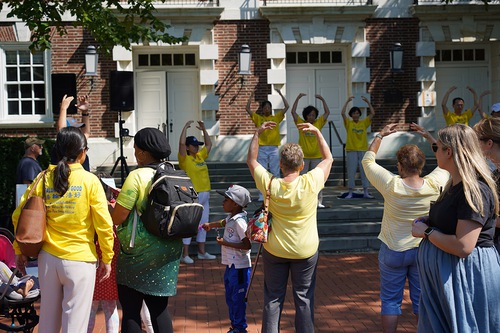 Гости изучали упражнения возле палатки практикующих Фалунь Дафа. Многие люди, в том числе представитель штата и кандидат в Конгресс США, выразили свою поддержку практикующим Фалунь Дафа и осудили преследование последователей Фалунь Дафа в Китае, которое продолжается с 1999 года.