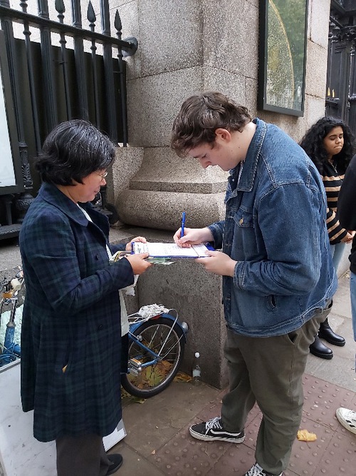 21 октября 2022 года практикующие Фалунь Дафа как обычно раздавали информационные материалы у Британского музея. Репортёр Би-би-си (BBC, британская вещательная корпорация) Ларисса остановилась у стола и подписала петицию, призывающую положить конец преследованию в Китае. Она взяла некоторые материалы и вошла в музей.
