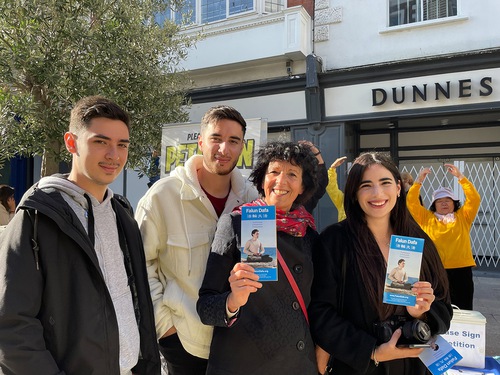 Мероприятие последователей Фалуньгун (Фалунь Дафа) прошло 22 октября 2022 года на оживлённой торговой улице в центре Дублина. Они демонстрировали упражнения, распространяли информационные материалы и собирали подписи под петицией, которая призывает остановить преследование в Китае. Многие китайские туристы восхищались мужеством и настойчивостью практикующих Фалунь Дафа.
